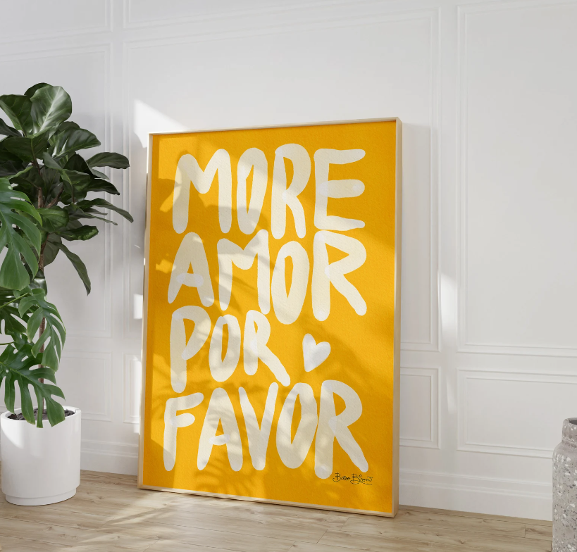 Lindo cuadro en impresión canvas con frase MORE AMORE por favor, varios fondos colores tamaño 25×50